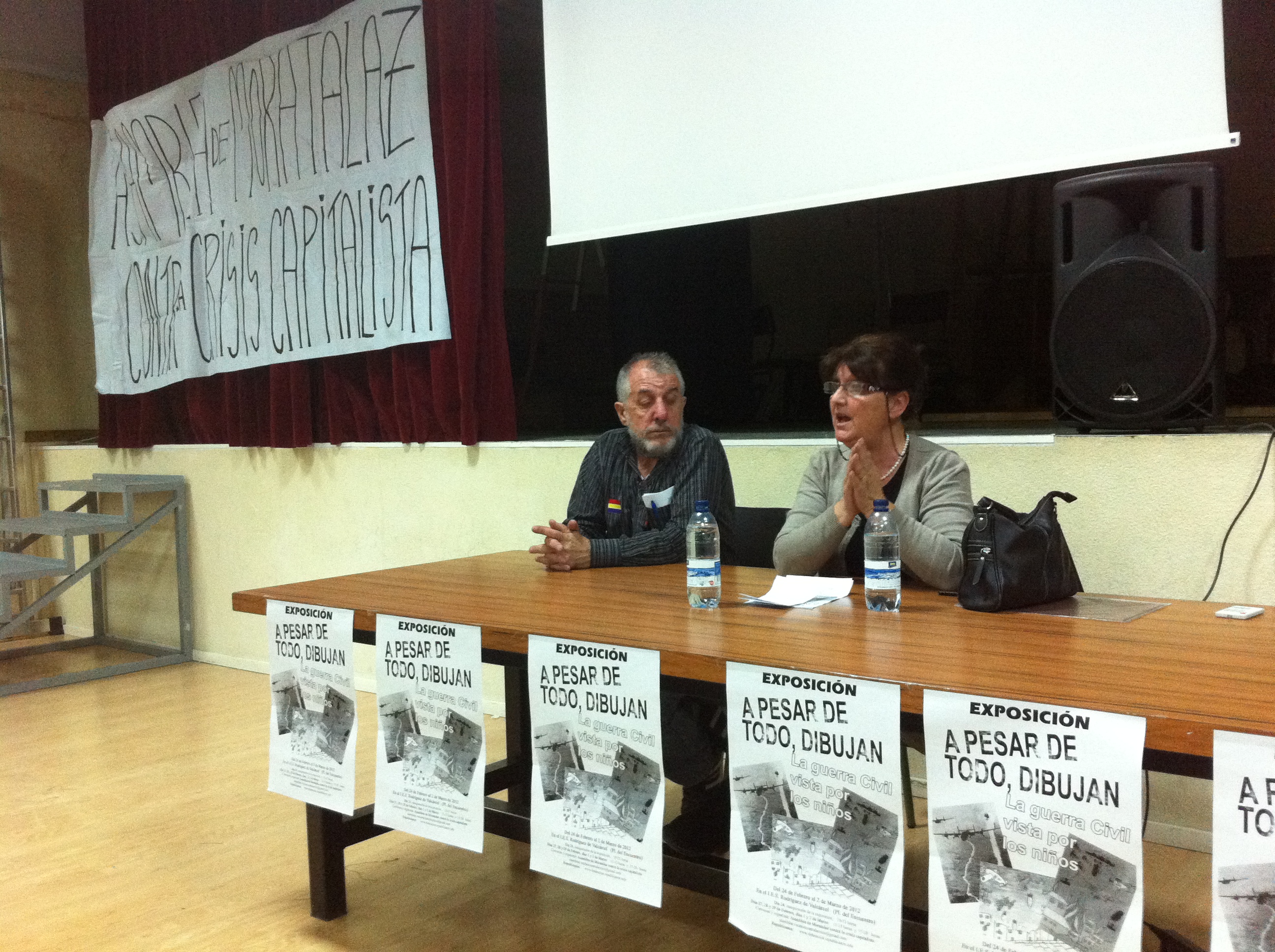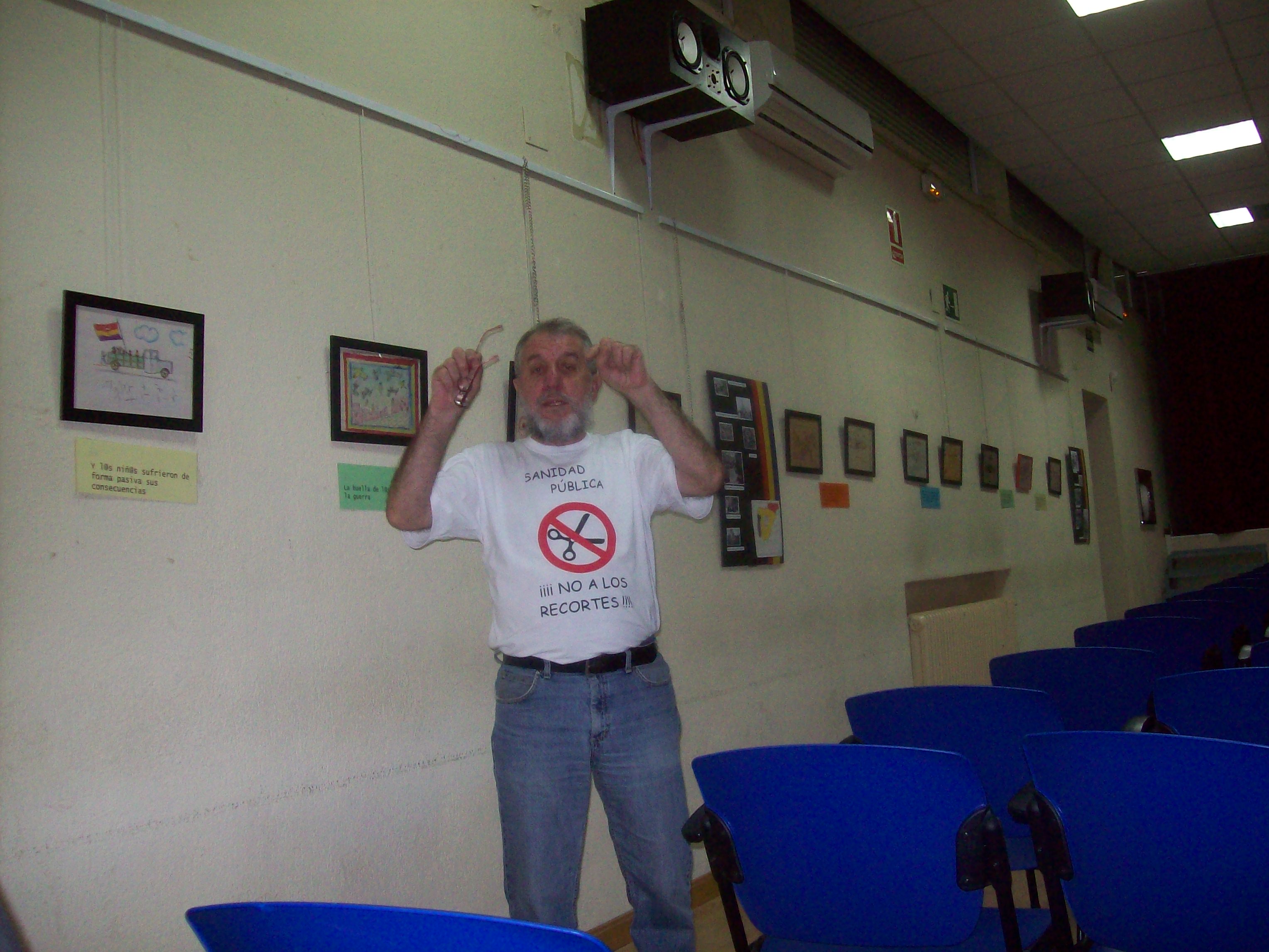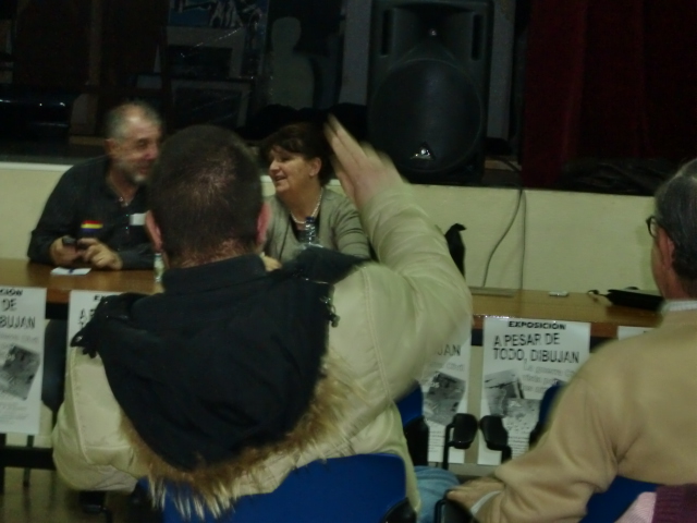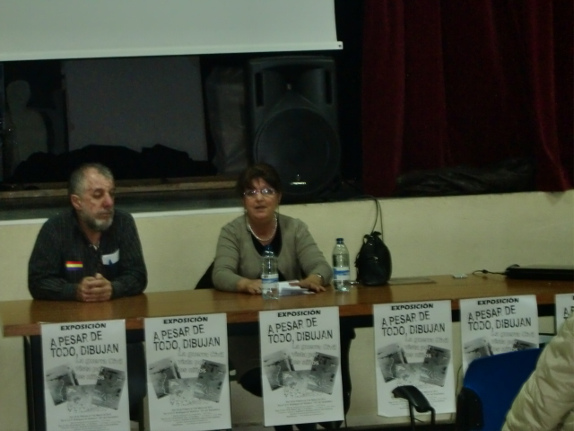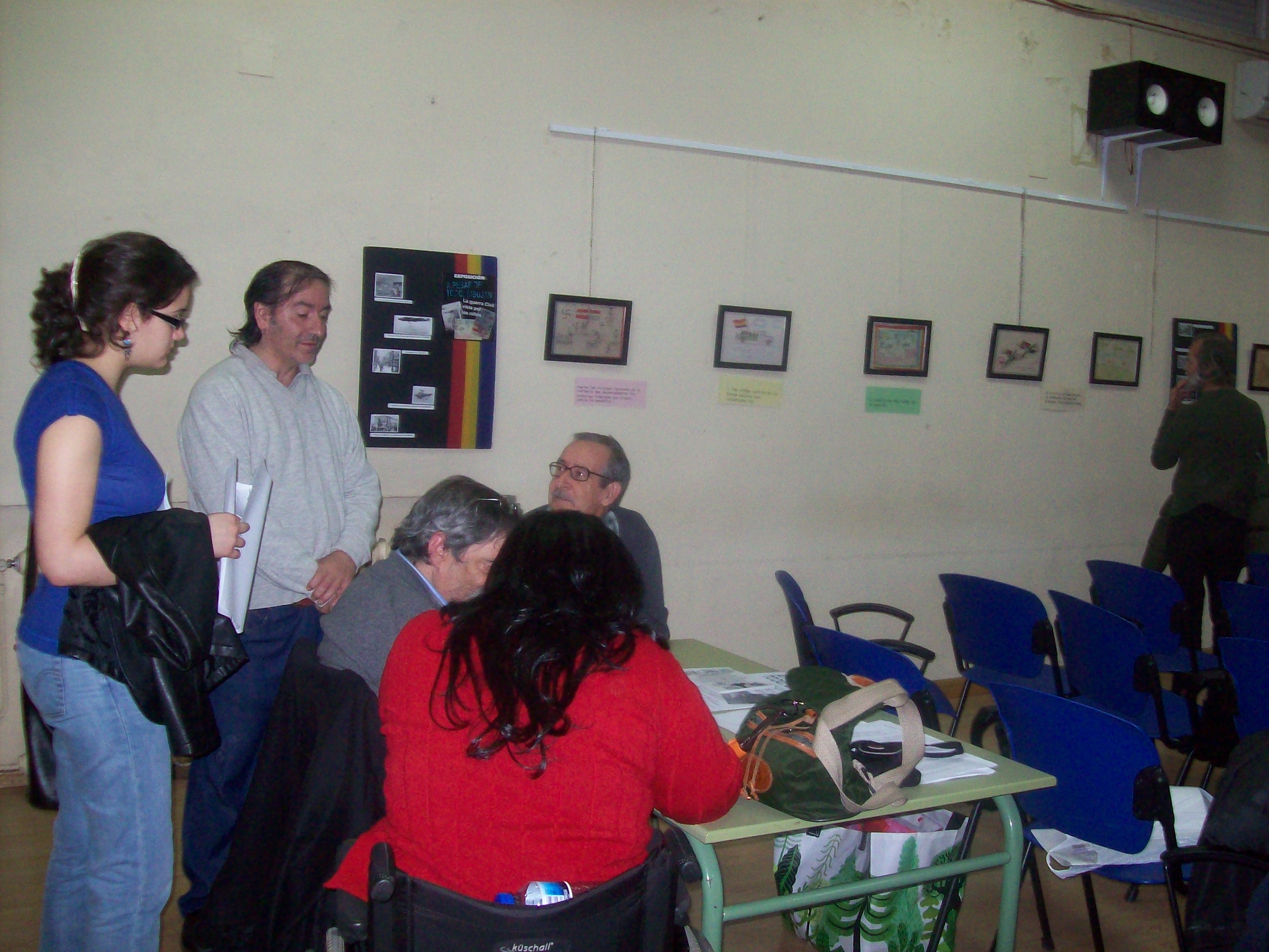 La muestra fue inaugurada el día 24 de febrero con un video emotivo que recordaba a las victimas y su dolor, que quedará reflejado para siempre en los dibujos. Y posteriormente se realizó una charla-coloquio, con la intervención de la compañera Luisa Martín de la Federación de Republicanos. A esta acudió mayormente personas mayores, al igual que en la semana que se mantuvo abierta la exposición aunque algunos jóvenes se interesaron por la exposición. Esto hace repensar y trabajar para exportar ese ejercicio de memoria a los más jóvenes dentro del ámbito del barrio. Ejercitar y recuperar la memoria es saludable, más aun, cuando la sociedad la ha perdido o esta en proceso de ello. Sin ella el ser humano pierde su sentido, y por ende la sociedad. Y porque no, porque es un acto de justicia hacia todas esas personas que lucharon por la libertad, puesto que sus ejemplos de lucha nos hacen falta tanto en los tiempos que vivimos.