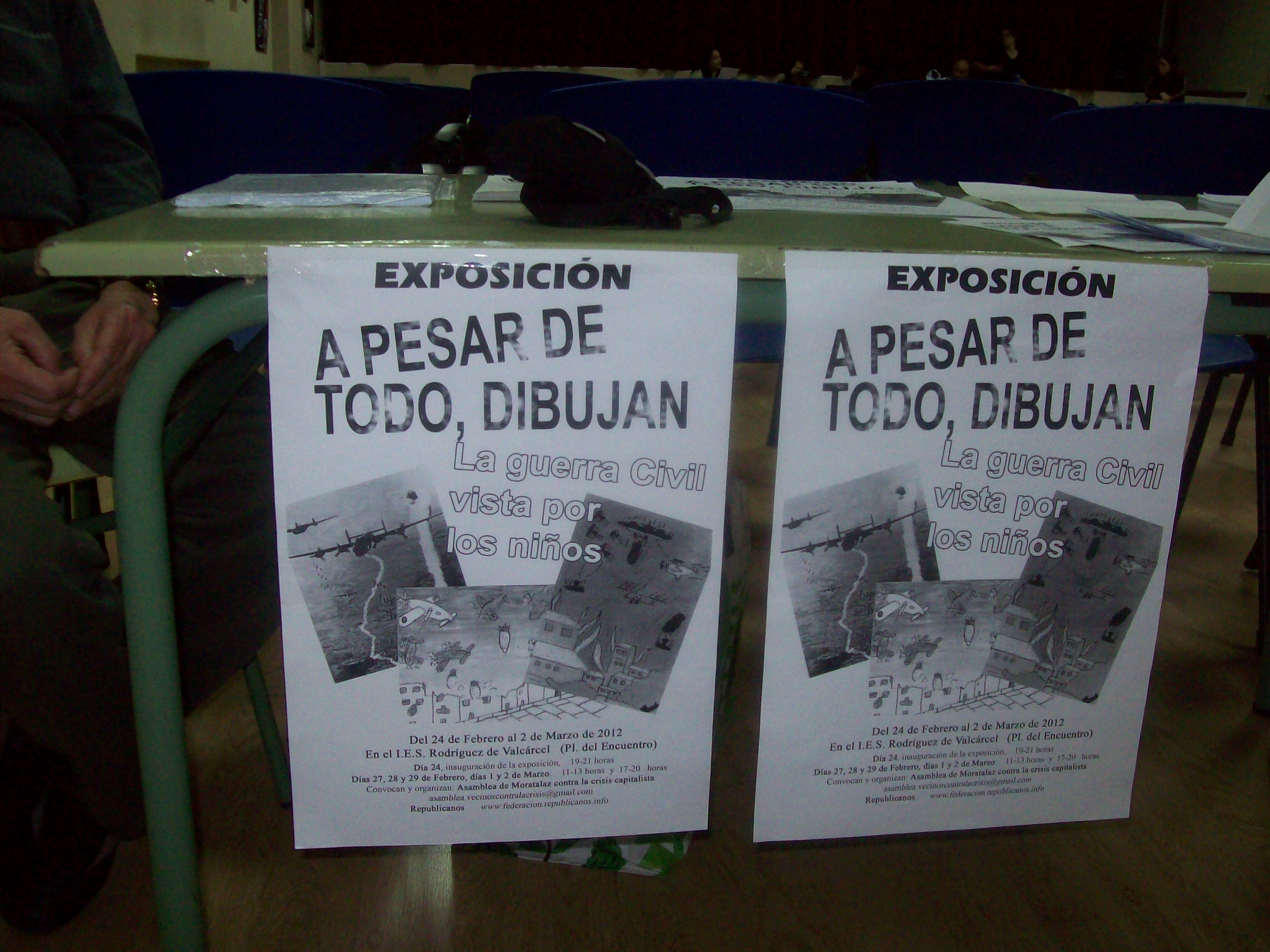 La Asamblea de Moratalaz Contra la Crisis Capitalista y Republicanos organizamos a finales del pasado mes de febrero y principios de marzo en el barrio obrero de Moratalaz (Madrid) una exposición sobre dibujos de los niños de la guerra con el título “A pesar de todo, dibujan”. El título, de entrada, nos deja entrever que los niños fueron actores activos en la guerra, a pesar de lo que se cree popularmente. Unos actores que sentían, sufrían, y veían igual que los adultos.