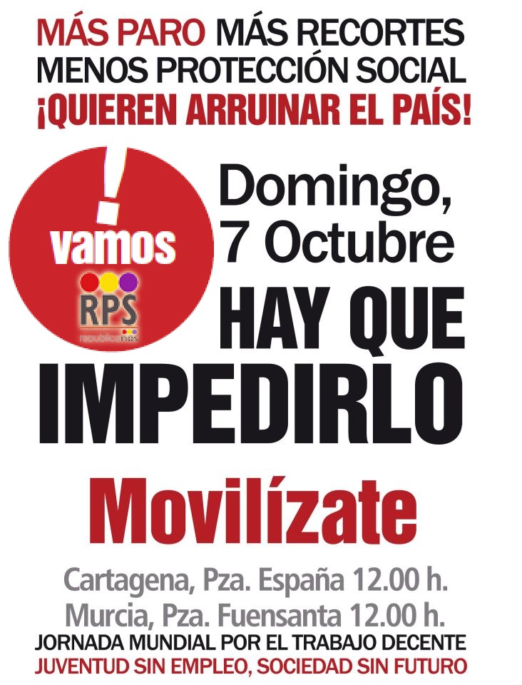 5 octubre, 2012 732 × 960 MURCIA: Manifestación contra el paro, los recortes y por la protección social ¡Los republicanos vamos!