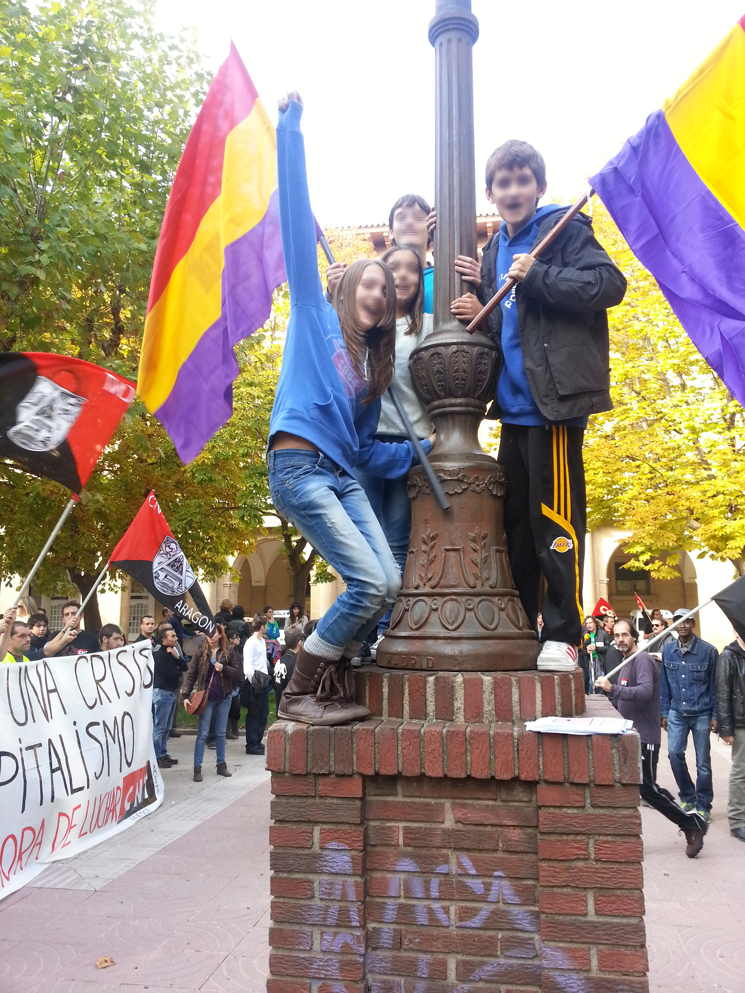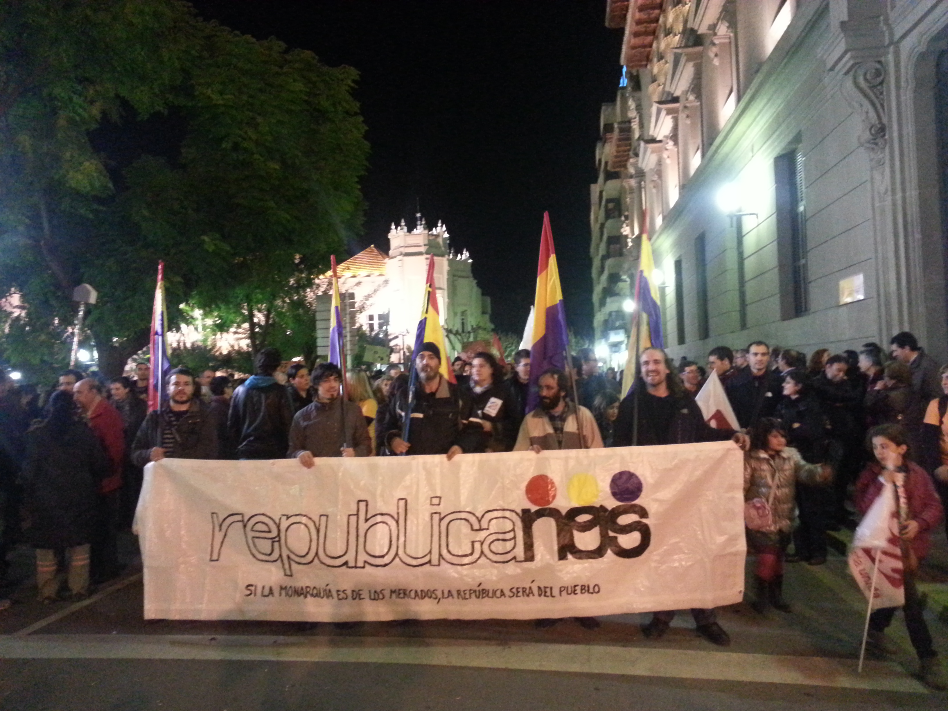 Todavía falta dar pasos más elevados,pero estamos avanzando bastante pues se ha visto el doble de bloque republicano,con juventud con ganas de cambio,juventud que se impone ante todo lo demás,juventud con ganas de luchar y de no rendirse ante los ataques que venimos sufriendo las clases trabajadoras y que se va dando cuenta que la única manera para que cambie esta situación es traer la 3ª república y lo demostró ondeando las banderas republicanas con fuerza y con ilusión, poniéndose al frente de la manifestación,subidos en las farolas y pidiendo la 3ª.