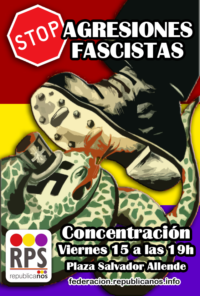 Asimismo, es preciso alertar a la sociedad del auge del fascismo, que en tiempos de crisis, recortes e inestabilidad social como los que vivimos, se envalentona amparado en un régimen que, cada vez más deslegitimado por sus políticas antipopulares y la corrupción que lo carcome desde sus más altas instituciones, lo utiliza como instrumento de agresión para intentar contener la respuesta popular. De ahí que la Administración, lejos de frenar a estas bandas y sus agresiones, permita las manifestaciones fascistas y mantenga en la legalidad a los partidos de extrema derecha.