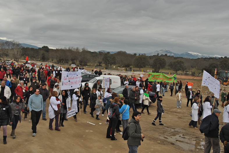 El domingo 10 de Febrero, a las 11 de la mañana, empezaban a ponerse en movimiento las tres ramas que compondrían la marcha en la sierra por la sanidad pública. La previsión era partir de Collado Villalba pueblo, Collado Villalba estación y Alpedrete, confluyendo todas en el hospital que se está construyendo allí.
