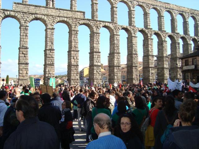 Unas mil personas, convocadas por la Plataforma Unitaria Contra la Crisis – Cumbre Social de Segovia (PUCC-CSS), recorrían las calles de la ciudad del acueducto esta mañana pidiendo, por los recortes, la corrupción y sus mentiras y engaños, la dimisión del Gobierno, apostando por el «trabajo y la democracia» y defendiendo la lucha unitaria para lograrlo.