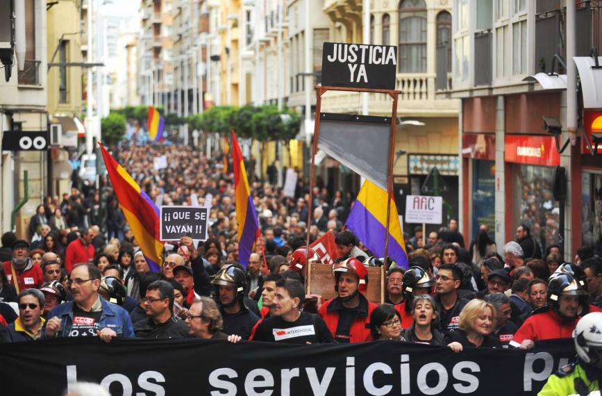 El pasado 16 de marzo las calles de Murcia se llenaron de miles de ciudadanos que están sufriendo las políticas de la banca y la gran empresa en España, para exigir “un gobierno sometido al control directo del pueblo”. Cuatro columnas que recogieron las convocatorias de distintas mareas ciudadanas (educación, sanidad, vivienda, agua, servicios públicos, empleo, dependencia…), recorrieron las calles de la ciudad con la convicción de que las exigencias sectoriales solo pueden ser realistas desde la perspectiva global que señale a los beneficiarios de las políticas que se están llevando a cabo para “salir de la crisis”, que ofrezca un programa que responda a las demandas de la mayoría y que fuerce la unidad de los colectivos a partir del trabajo de base.
