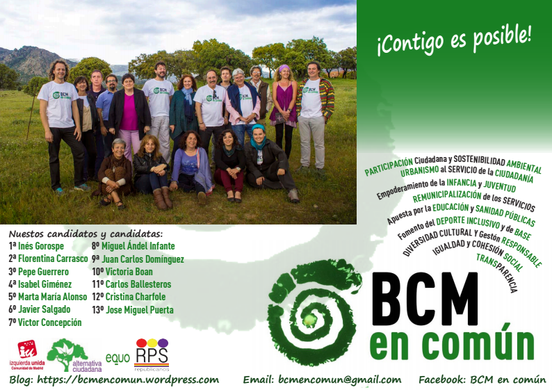El pasado sábado 9 de mayo en el Edificio Administrativo de Mataelpino, hicimos la presentación oficial del Programa Electoral de BCM en Común, que ha sido construido con la participación de tod@s en los distintos asambleas participativas, talleres y por diferentes canales.