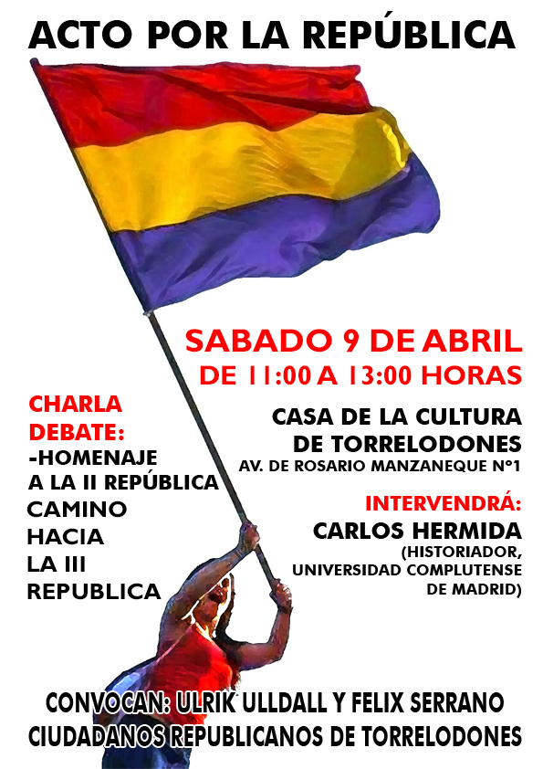 Desde la Junta Republicana de Móstoles-Junta Estatal Republicana (JRM-JER), lamentamos que el Gobierno municipal haya hecho oídos sordos a nuestra petición de izar la bandera de la II República en la fachada del Consistorio para conmemorar el aniversario de su proclamación, la cual supuso, a todas luces, un avance sin precedentes en los derechos civiles y económicos de la mayoría social trabajadora.