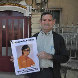 Antonio Martos, hermano de Cipriano Martos, sostiene un cartel con la foto de su hermano