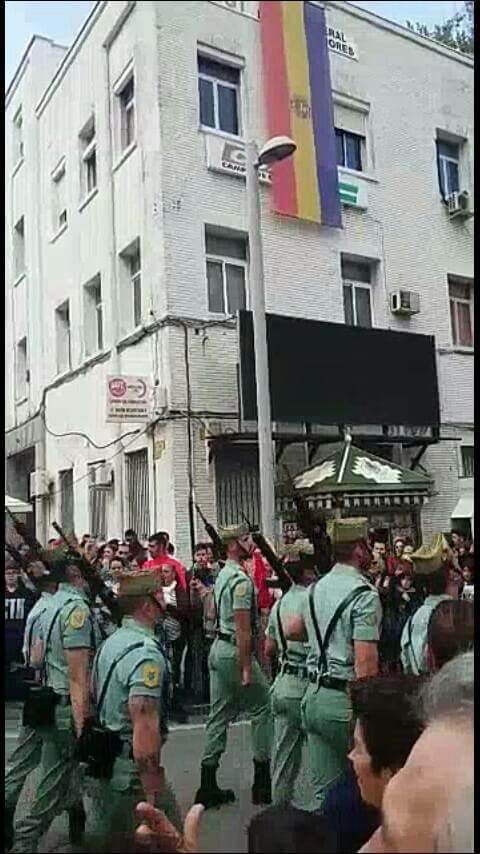 En esta ocasión se da la circunstancia de que los actos conmemorativos se llevaron a cabo el sábado día 8 y la bandera permanecerá desplegada toda la semana, por lo que ha coincidido con el desfile de la Legión de este Lunes Santo, en el que acompaña la procesión del Cristo de la Columna y la Virgen de las Lágrimas de Algeciras.