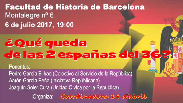 El pasado seis de julio se ha realizado en la Facultad de Historia de Barcelona la Conferencia “¿Que queda de las dos Españas del 36?” organizada por Coordinadora 14 d’abril de Barcelona