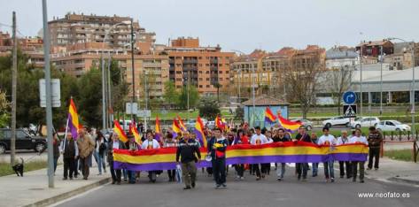 Y quien no ha podido venir, ha comunicado su ausencia y su solidaridad mediante e-mails, watsapps y llamadas telefónicas. Han estado con nosotros y hemos sentido su presencia y aliento.Parecía que iba a llover. Pero no. El recorrido entre la Plaza del Casino y el Memorial 545 se cubre con calor y cierta rapidez. Banderas republicanas y aragonesas, lemas y gritos ya por todos conocidos y una ambientación musical se desplaza a lo largo del Coso. Una mujer lanza un ¡¡Viva España!! a nuestro paso con evidentes deseos de provocación. Como si un viva a un territorio que deseamos republicano y libre pudiera ofendernos. Quizás lo que la ciudadana ansía escupir es un ¡¡Arriba España! fascista y asesino. Aún así no hubiera encontrado reacción alguna entre nuestras gentes; tan sólo indiferencia hacia actitudes que el devenir de la Historia arrincona en las páginas más negras y sucias de los libros de texto. Aún así, a pesar de su suciedad (o por ello mismo), páginas que debemos conocer como vacuna que inmunice contra el/los totalitarismos.