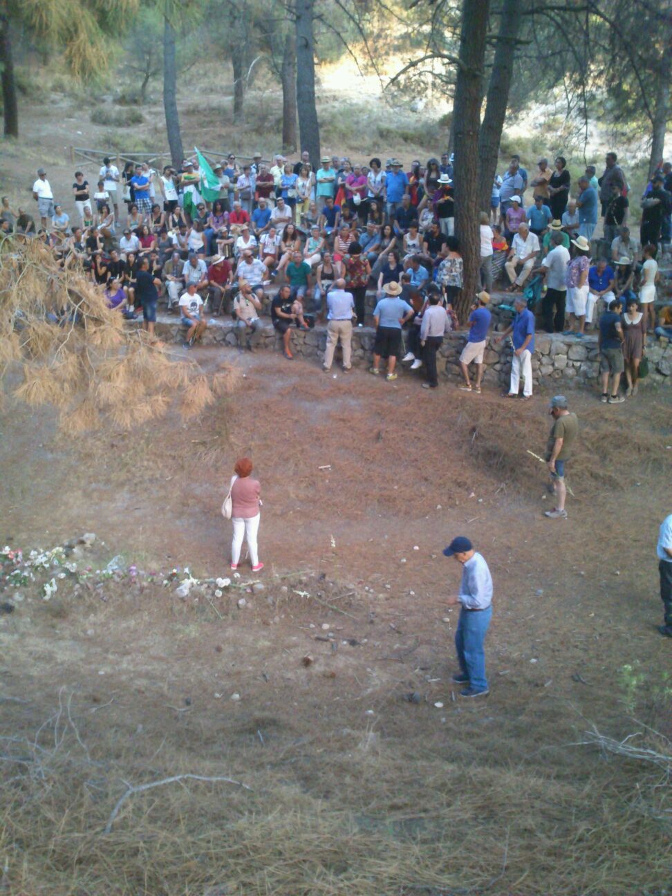 Convocados por la Asociación Verdad, Justicia y Reparación se realizó en Granada un homenaje en una de las fosas donde hay más de 4000 republicanos enterrados cerca de donde buscan los restos del poeta Federico García Lorca. Al acto acudieron varios centenares de personas que depositaron flores con los colores republicanos en el lugar de la fosa.