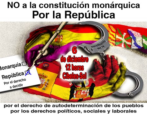 El manifiesto concluye con la llamada a «todos los pueblos del Estado español» a salir a las calles el próximo 6 de diciembre «contra la constitución de 19878 y la monarquía franquista por el derecho de autodeterminación de los pueblos».