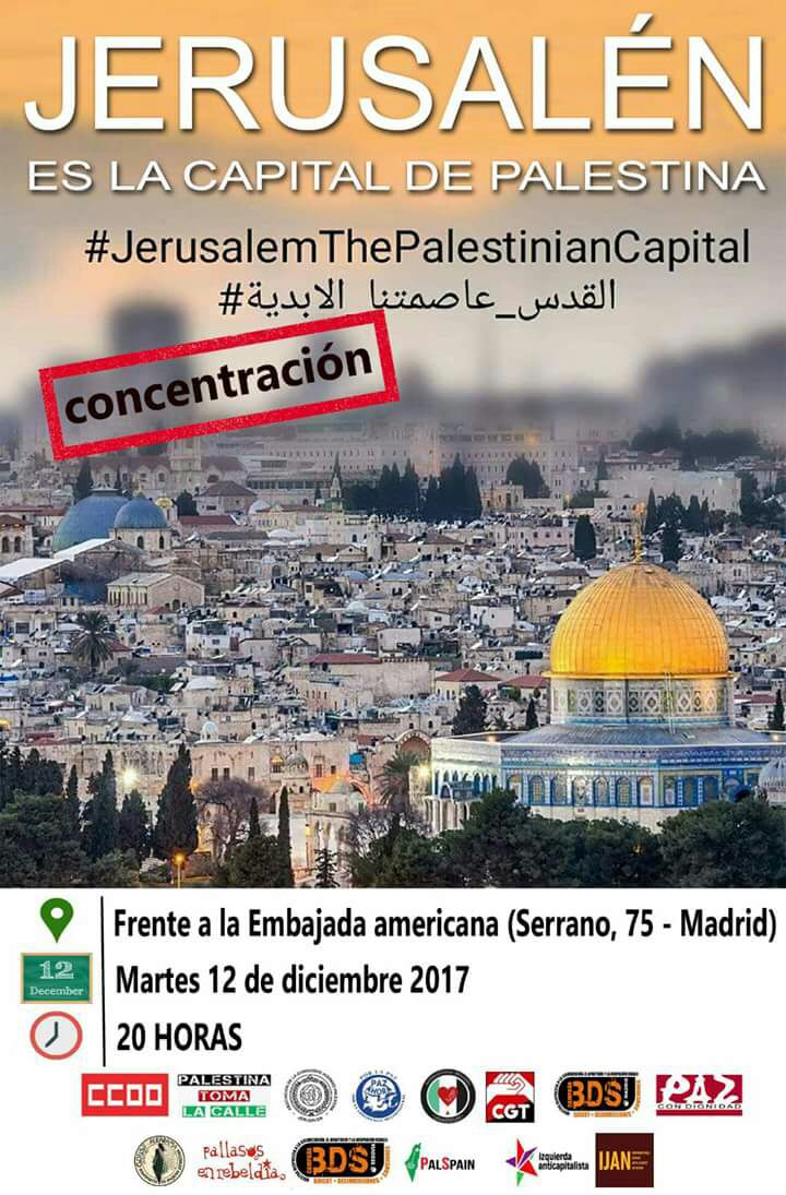 Continúan las protestas en diferentes partes del mundo, tambien en España, contra el reconocimiento de Jerusalén como capital de régimen sionista de Israel por parte de Trump.