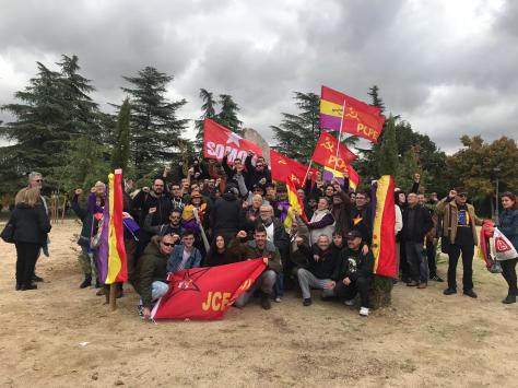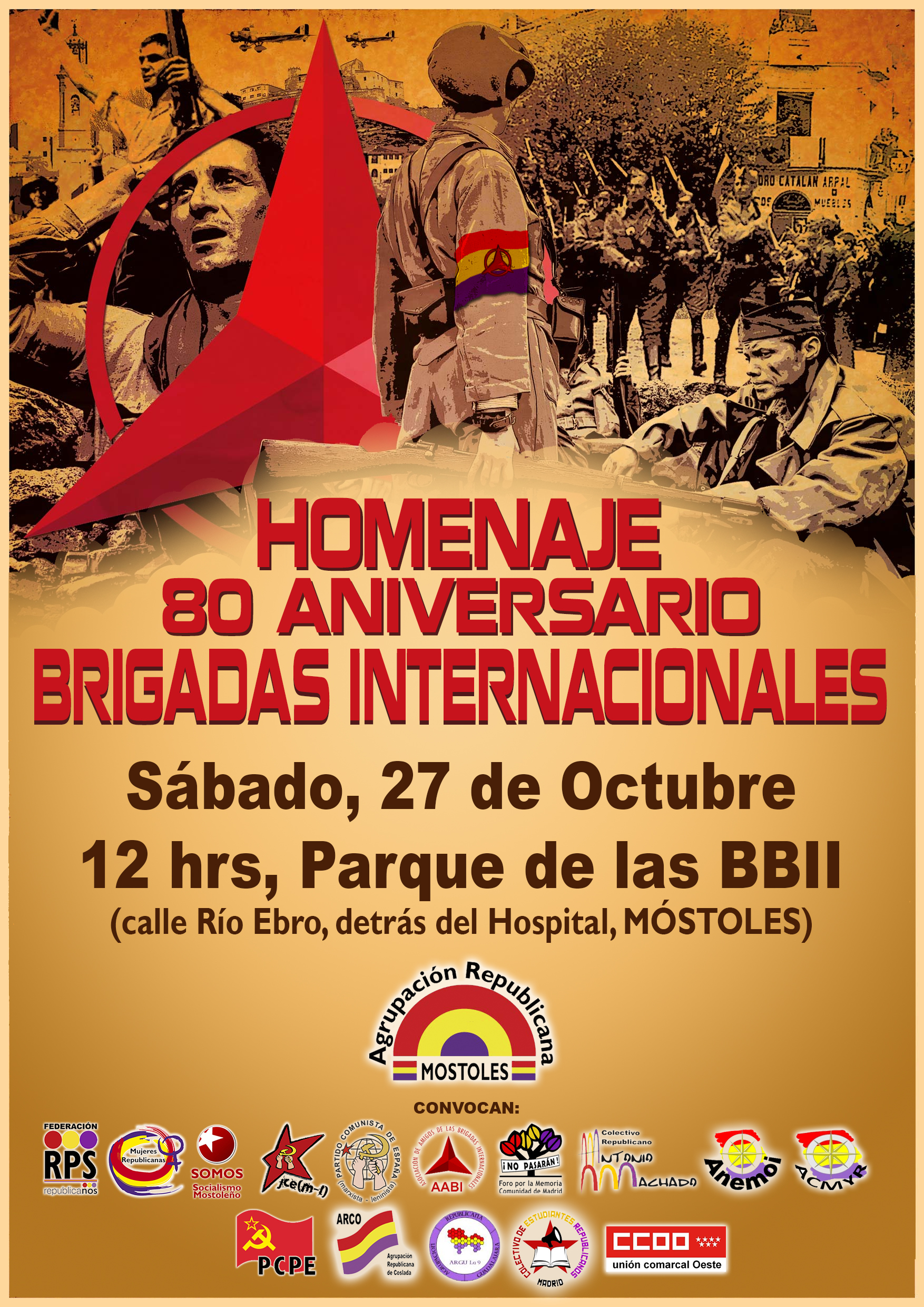 El acto de homenaje se desarrolló frente al monumento en honor de las BBII engalanado con banderas republicanas, comunistas y anarquistas, en el parque mostoleño del mismo nombre al que acudieron mas compañeros que en años anteriores y la participación de diversos partidos, sindicatos y organizaciones.