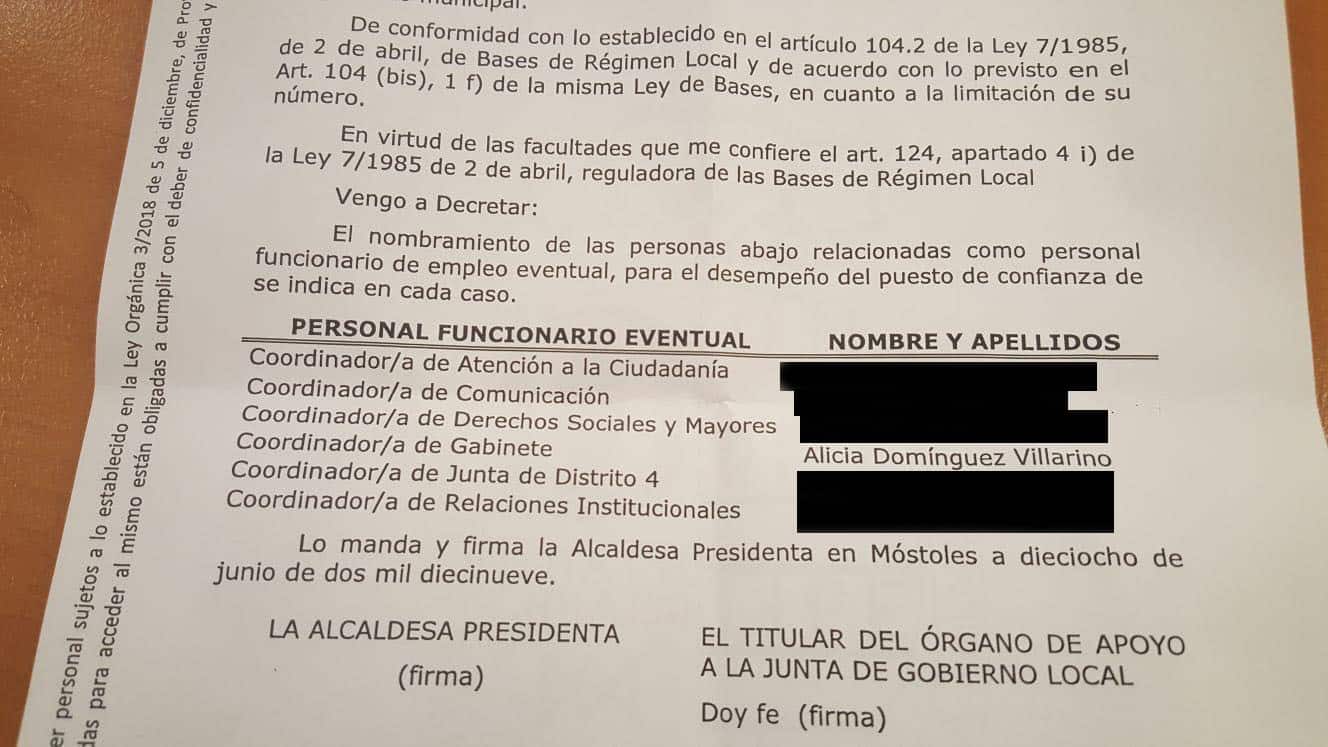 Noticia relacionada: La alcaldesa de Móstoles contrata a una amiga tras fichar a su hermana y ascender a su tío