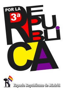 El Espacio Republicano de Madrid, que representa a entidades políticas, republicanas, cívicas, culturales, obreras, juveniles, feministas y memorialistas hace un llamamiento a construir la III República, una república de trabajadores y trabajadoras de toda condición, una república respetuosa con los pueblos que la componen, una república que no se deja amedrentar por los intereses del imperialismo. Esta República es la única solución posible a este estado de cosas, y debemos reivindicarla el próximo 14 de Abril a las 21 horas como primer paso para ir organizando la unidad necesaria para cambiar la correlación de fuerzas y nuestras voces, las de las clases trabajadoras y las capas populares, sean escuchadas y obedecidas.