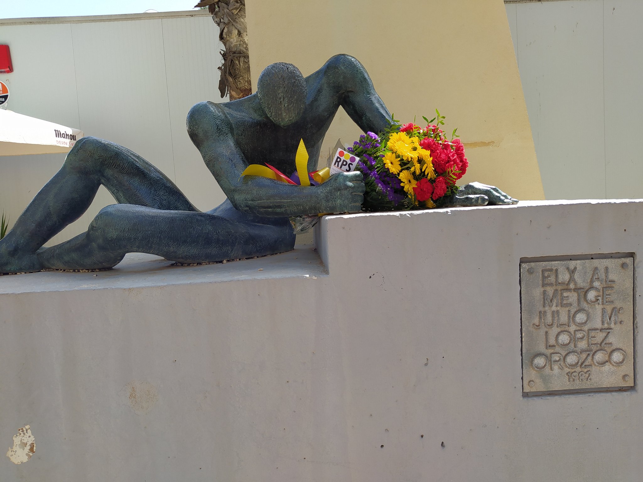 En #Elche, tras la caravana republicana, algunos militantes se reunieron ante los monumentos dedicados al diputado republicano J.M. López Orozco y a las víctimas del #Fascismo para llevar a cabo sendas ofrendas florales.
