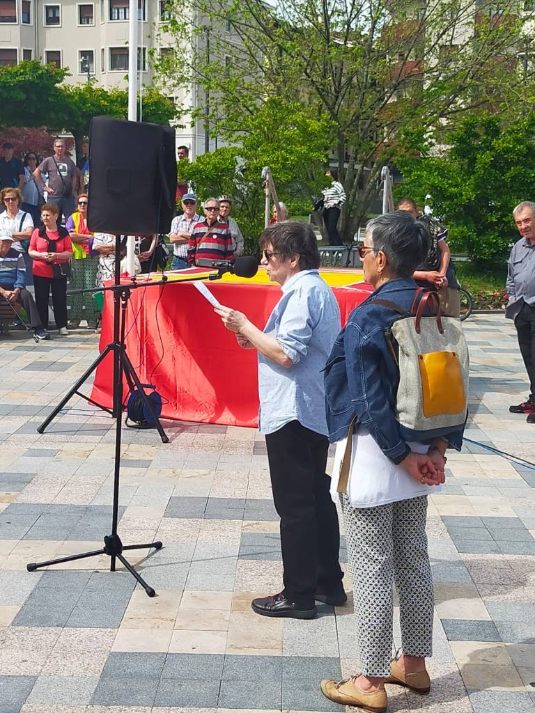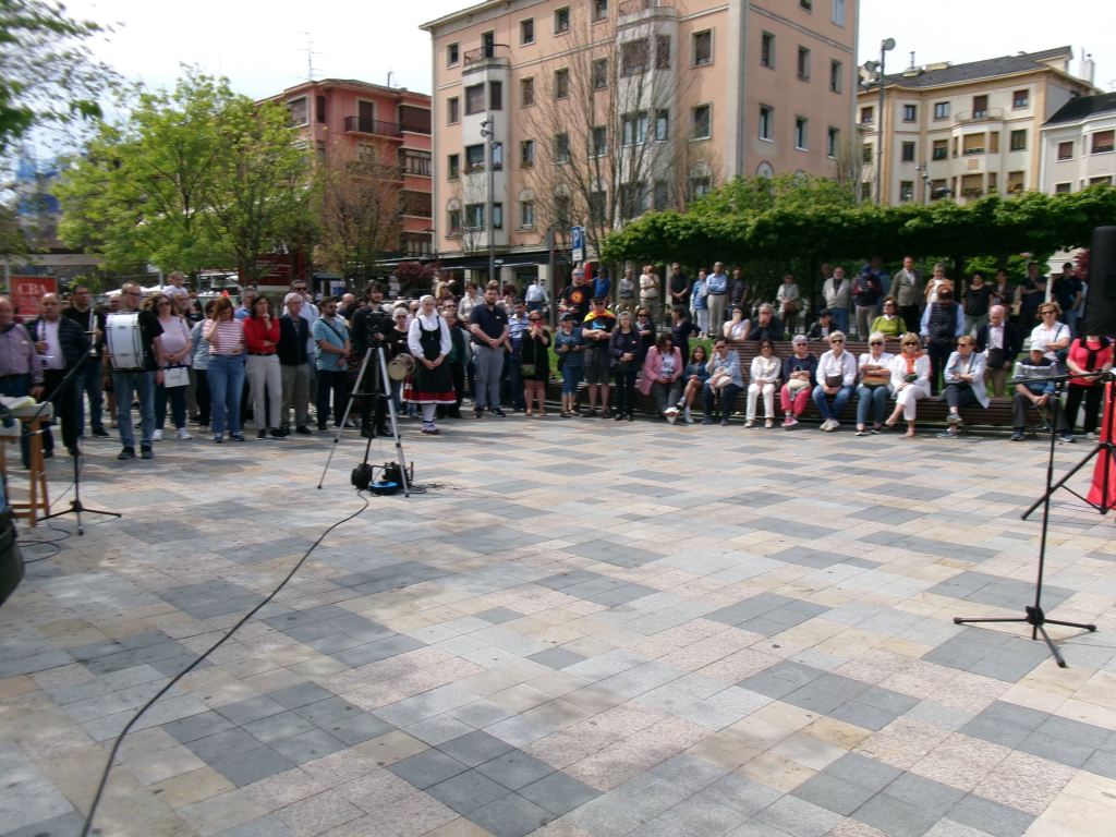El acto ha comenzado con los sonidos de la txalaparta. A continuación, miembros de la Asociación han leido un comunicado y tras éste, ha hablado la alcaldesa de Irun, Cristina Laborda