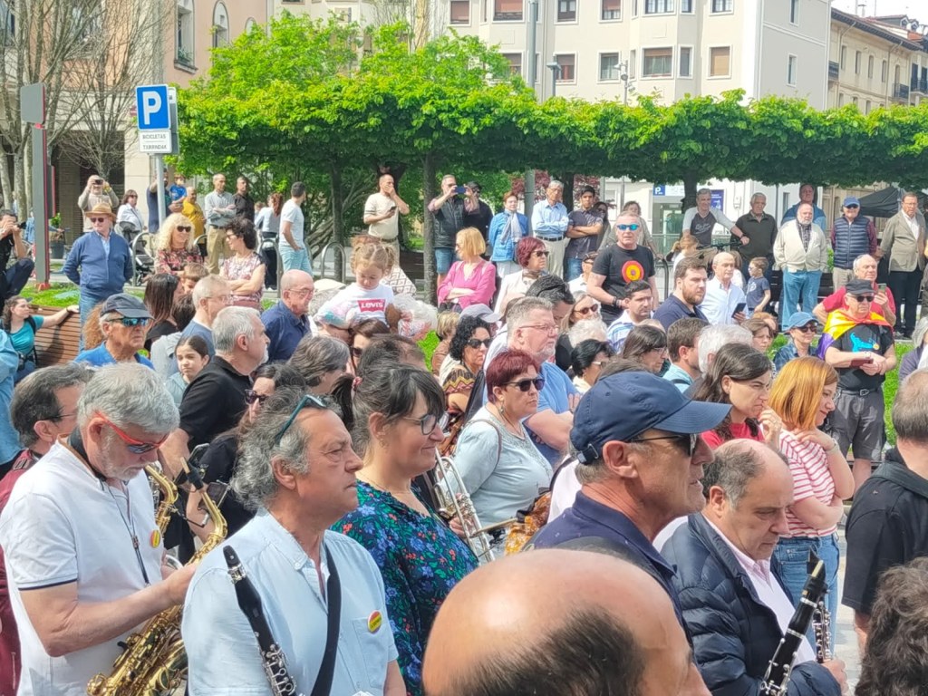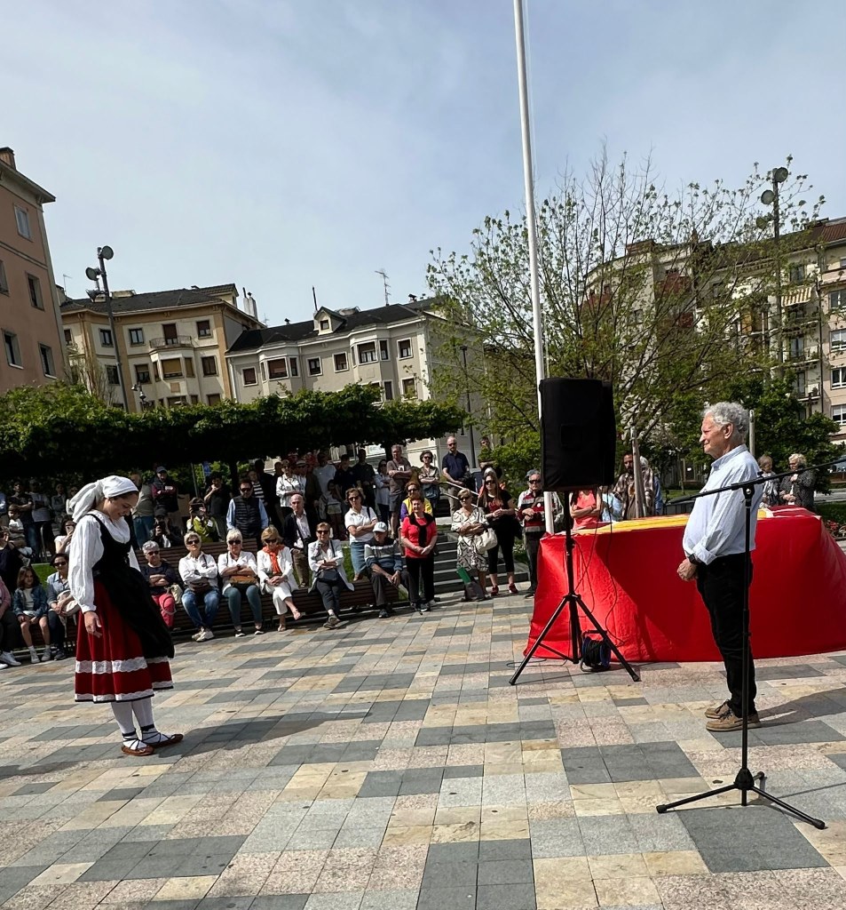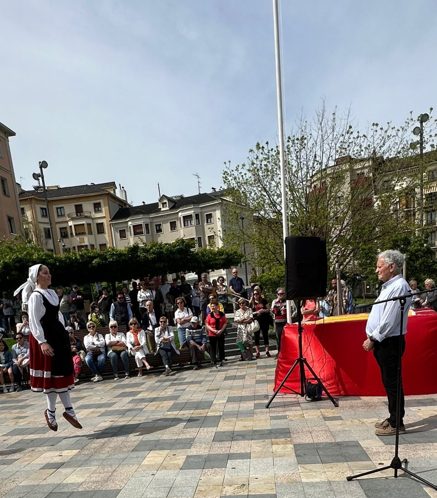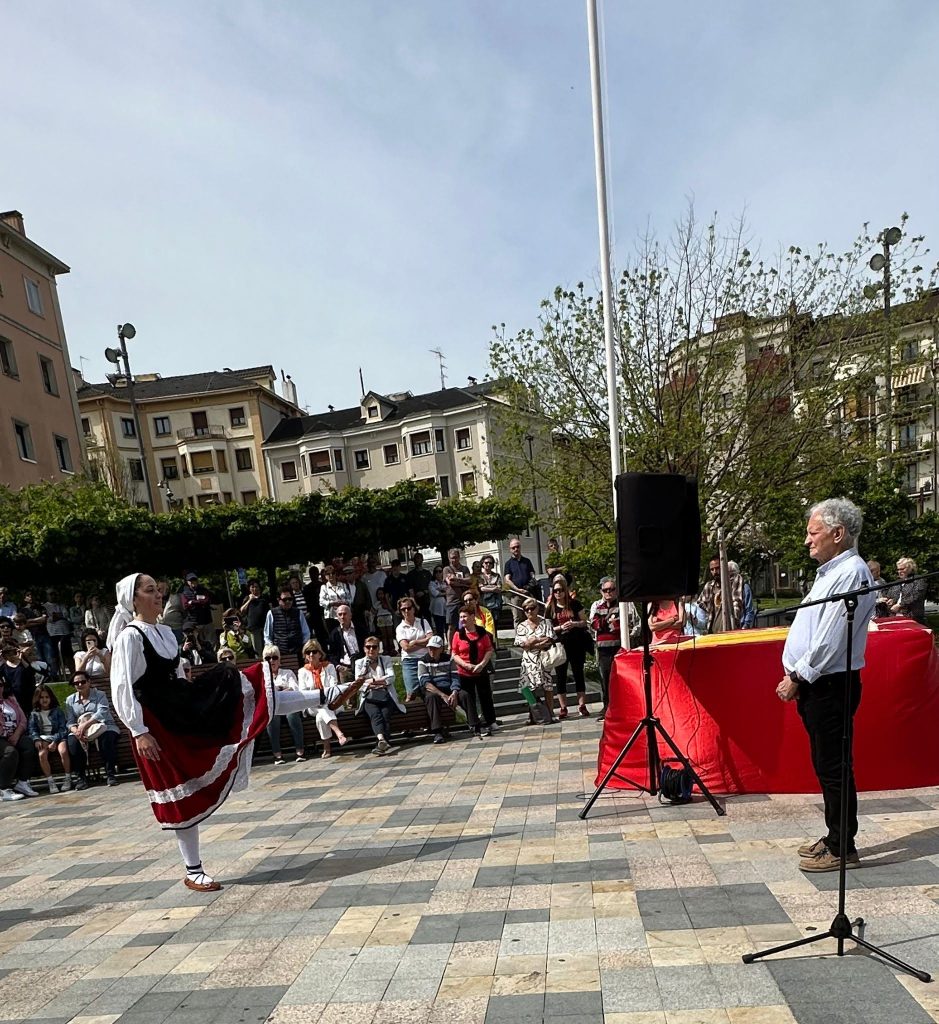 Tras el aurresku de honor, se ha izado la bandera a cargo de José Monje acompañado por un grupo de música que ha interpretado «Eusko Gudari», «Himno de Riego» y la «Internacional».