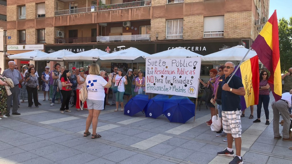 Ayer 17 de junio, la Plataforma de Pensionistas de Móstoles convocó en la puerta del Ayuntamiento una concentración para reivindicar los terrenos públicos para dotaciones públicas oponiéndose al plan de macroresidencias  privadas en terreno público.
