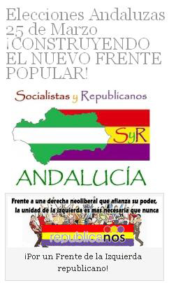 La coalición electoral Socialistas y Republicanos presentarán este próximo viernes, 2 de marzo, su candidatura electoral por la provincia de Cádiz, en un acto que se celebrará en el Ateneo José Roman de Algeciras (Barriada de Pescadores) a las 19 horas. Intervendrá Cesar Alfonso Viñas, número uno de esta lista republicana por Cádiz, profesor y escritor del Campo de Gibraltar, que estará acompañado de un amplio elenco de candidatos de la comarca que componen esta lista electoral totalmente republicana. Este será el primer acto oficial que se celebre en la provincia desde la creación de la coalición electoral en Cádiz, reconociéndose así la labor de los republicanos del Campo de Gibraltar que desde años llevan siendo la vanguardia del debate republicano en toda la provincia, y, como no podía de ser de otra manera, un nutrido grupo de candidatos republicanos de la comarca componen esta lista que se presenta a estas elecciones al Parlamento de Andalucía como un primer eslabón de ir poniendo las bases de una República demócratica, de trabajadores de toda clase y federal, siendo vital en la actualidad plantar cara a quiénes desde instancias políticas y empresariales (y de otras formas corruptas) intentan imponer su programa de laminación de los derechos colectivos conseguidos a través de décadas de lucha, y confrontarlo con nuestro propio programa político, republicano y popular, y es necesario hacerlo unidos, con tanto o más ahínco y determinación como los que emplean quiénes están empeñados en eliminar nuestras conquistas sociales, manifiesta Juan Ramón Gómez, coordinador local de republicanos de Algeciras. Seguir leyendo Socialistas y Republicanos presentarán su lista electoral en Algeciras