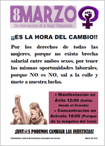La pasada conmemoración del día internacional de la mujer trabajadora, (se dice ahora solo «de la mujer» pero implica «trabajadora», aparte de lo histórico de la fecha, pues ¿cuándo no es una mujer trabajadora en sus diferentes campos de batalla de cada día?), nos ha dejado claro que la lucha legítima por la igualdad y derechos de la mitad o más de la poblacion mundial se abre camino. No es de ahora, no es de anteayer. Es una lucha infatigable marcada por la muerte de cientos de mujeres y sus hijos.