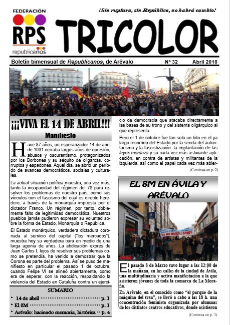 Organizado por la Federación Republicanos (RPS) de Arévalo y la Asociación Feminista Regional Abulense (AFRA), tendrá lugar mañana domingo, 6 de mayo, la charla-coloquio “La cuestión de la Mujer”. Será en la Casa del Concejo (Pza. del Real), a las 19:00 h., y correrá a cargo de Luisa Martín, de Mujeres Republicanas. Seguir leyendo Arévalo:CHARLA-COLOQUIO: “LA CUESTIÓN DE LA MUJER”