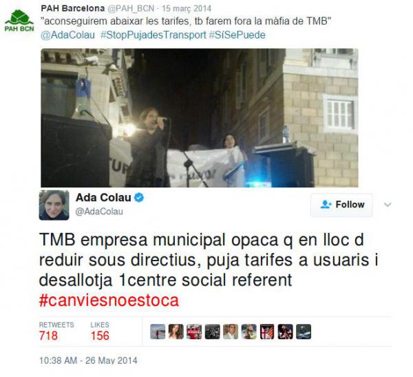 Ada Colau ha pasado de catalogar en 2014 a los directivos de la empresa de Metro de Barcelona como una ‘mafia que hay que echar’, a darles apoyo y actuar contra las huelgas de los trabajadores. ¿Cuál es la razón de este cambio?