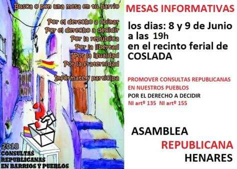 Un grupo de ciudadanos y ciudadanas de nuestro municipio ha convocado una manifestación en contra de la corrupción para el próximo viernes, día 2 de junio a las 19 horas, con salida de la Glorieta de la Mujer de Coslada y terminando a la puerta del Ayuntamiento. Seguir leyendo MANIFESTACIÓN EN CONTRA DE LA CORRUPCIÓN