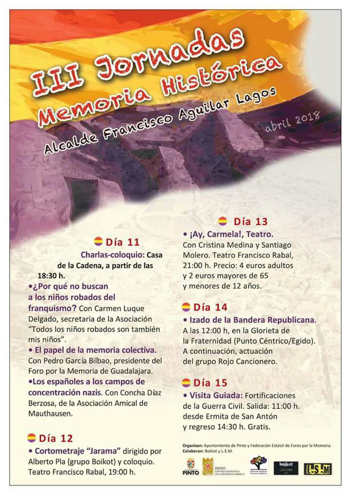 1ªs JORNADAS DE MEMORIA HISTÓRICA “Francisco Aguilar Lagos”, PINTO 2, 9 y 16 de abril 2016