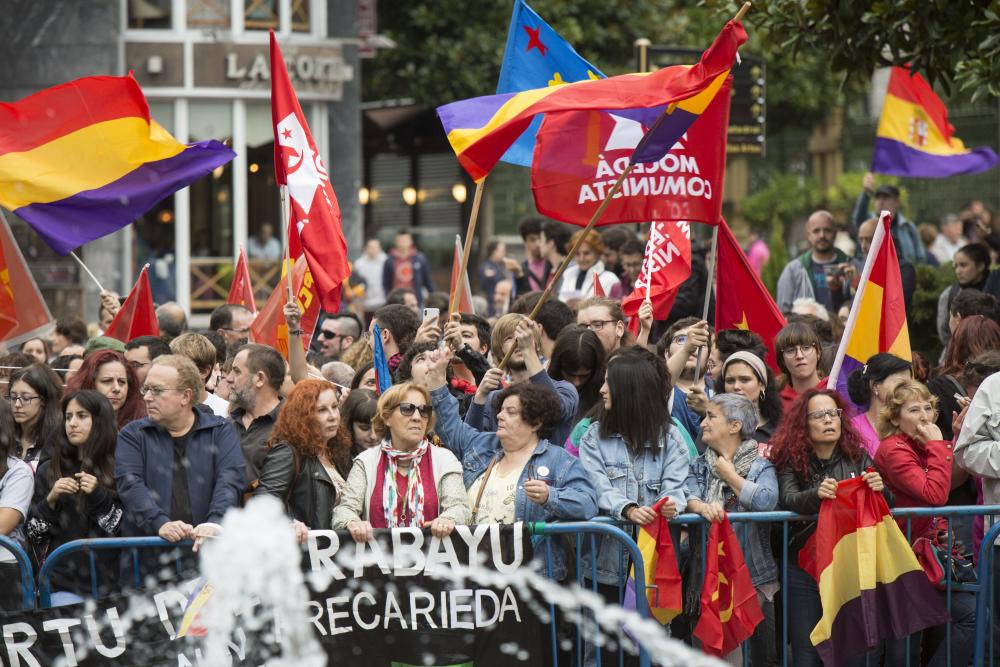 Por primera vez en su historia coinciden dos manifestaciones antagónicas, pero no enfrentadas – Por un lado, la Marcha de la Dignidad, contra la monarquía y reivindicativa de derechos sociales básicos y una concentración espontánea «por la Unidad de España” propiciada por la situación de Cataluña