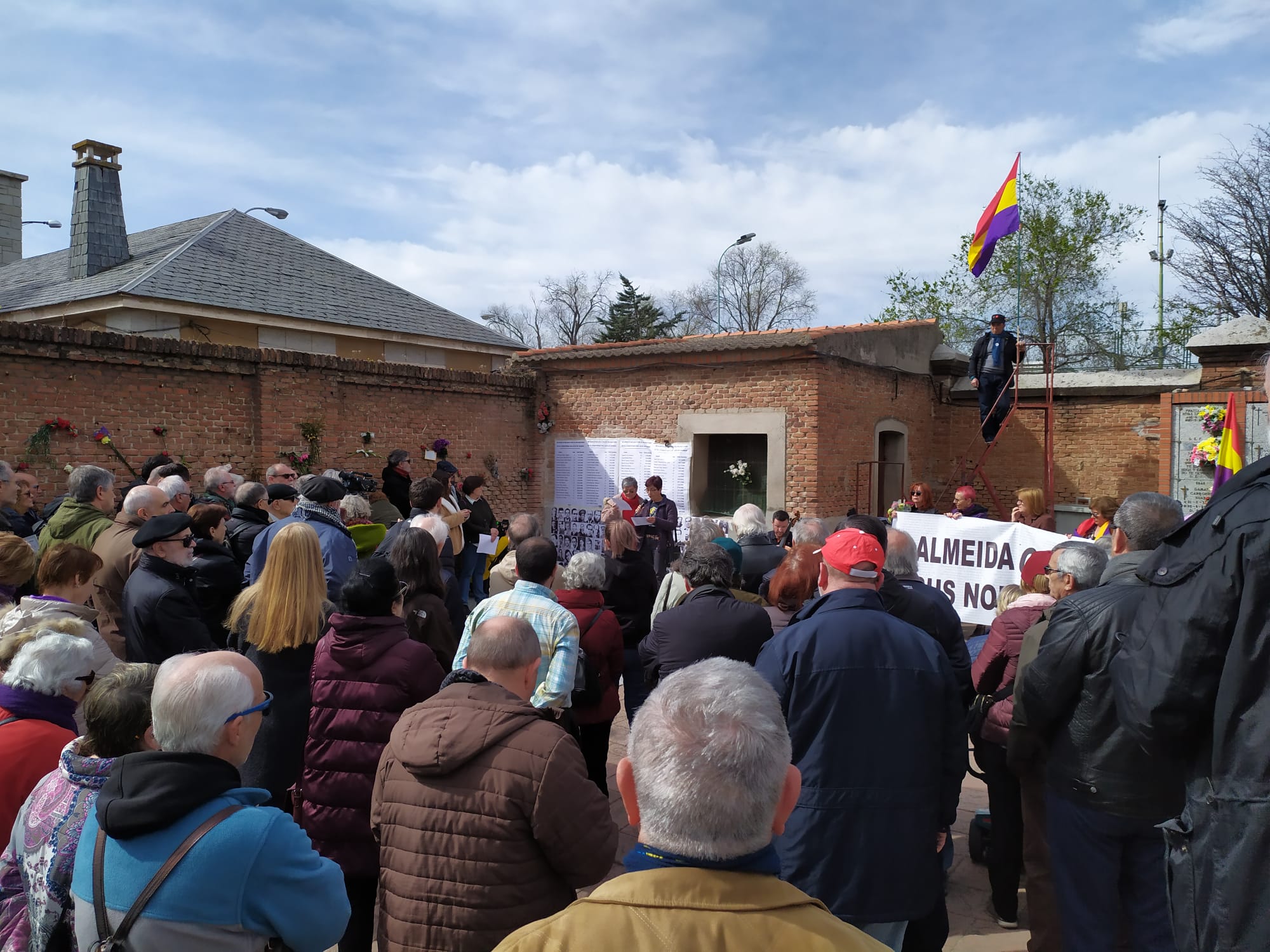 Ayer se celebró en el Cementerio del Este un sentido Homenaje a las mujeres víctimas del franquismo convocado por la Plataforma en defensa del Memorial al que se opone Almeida, alcalde de Madrid, apoyado por su partido -el Partido Popular- y los populistas y ultraderechistas de C´s y VOX. Seguir leyendo Homenaje a las mujeres víctimas del franquismo en el Cementerio del Este